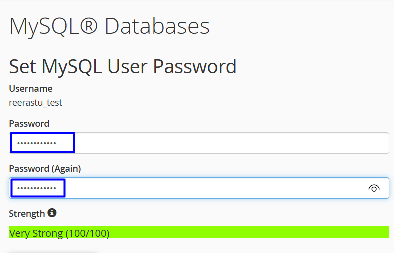 • In the Password and Password (Again) text boxes, type the new password, As in the following image