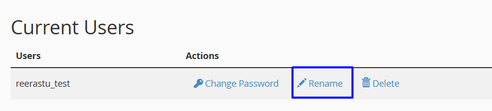 Under Current Users, locate the user that you want to rename, and then click Rename