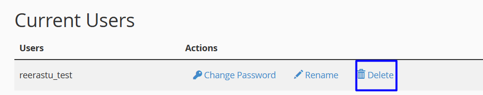 • Under Current Users, locate the user that you want to delete, and then click Delete