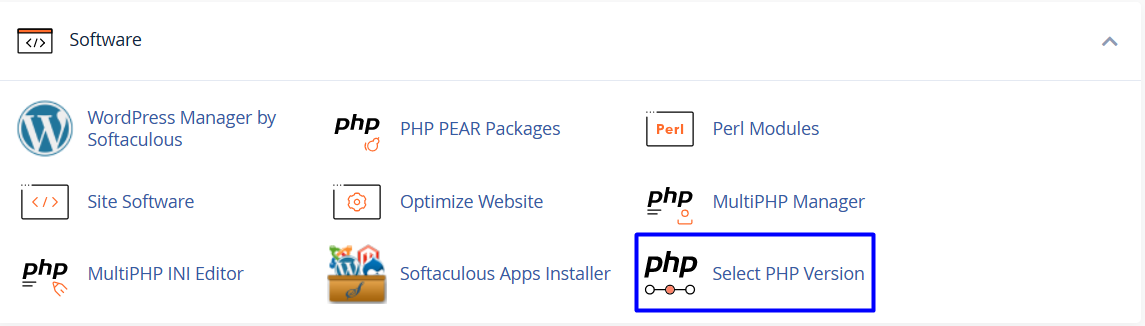 - List of software will appear, choose select php version As in the following image
