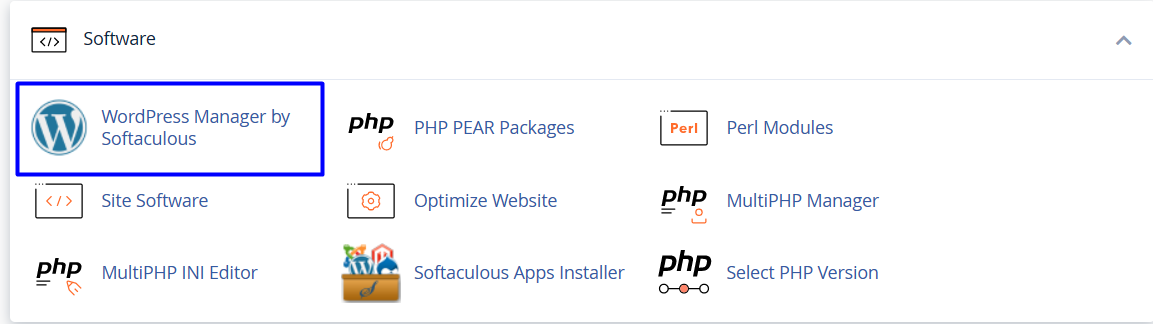 • List of Software will appear, choose Wordpress Manager by Softaculous As in the following image