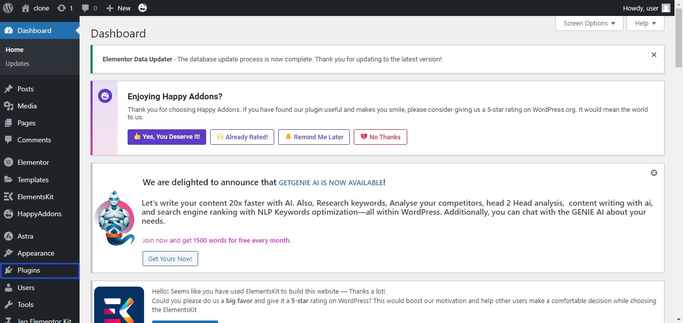 • Dashboard will appear, choose plugins As in the following image