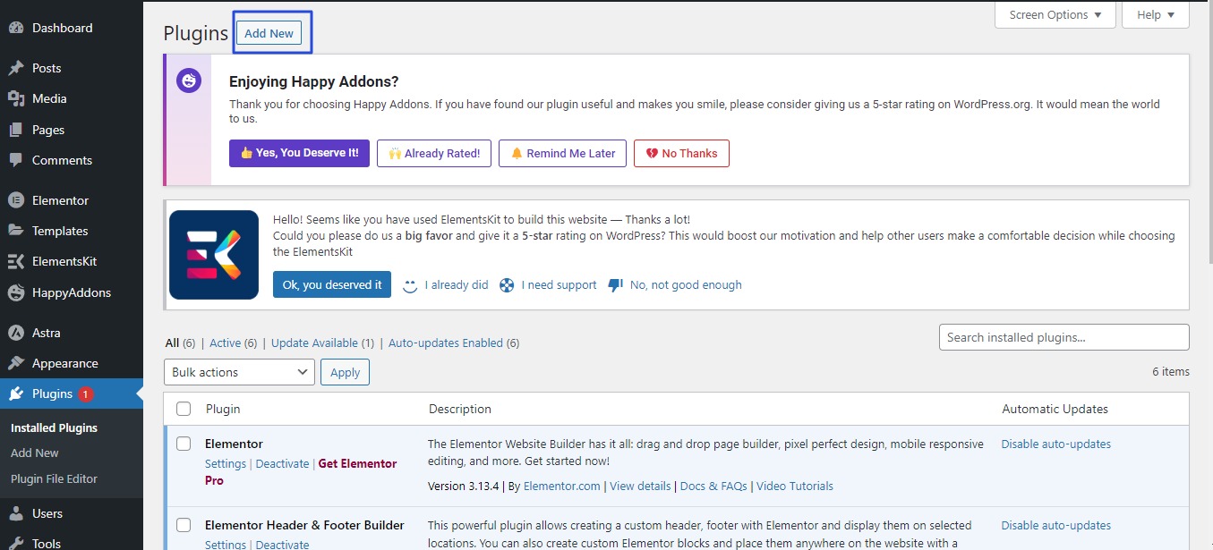 • List of plugins will appear , click Add New As in the following image