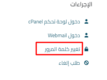 • ستظهر لك قائمة الإجراءات، كما في الصورة التالية؛ قم بالضغط على زر (تغيير كلمة المرور).