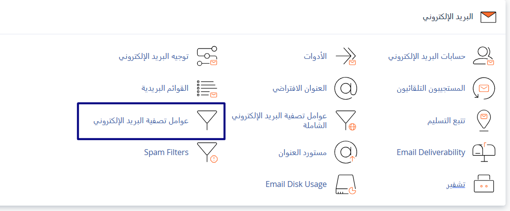 ستظهر لك قائمه بالحسابات كما في الصوره التاليه ,قم بالضغط علي زر (عوامل تصفيه البريد الاكتروني)